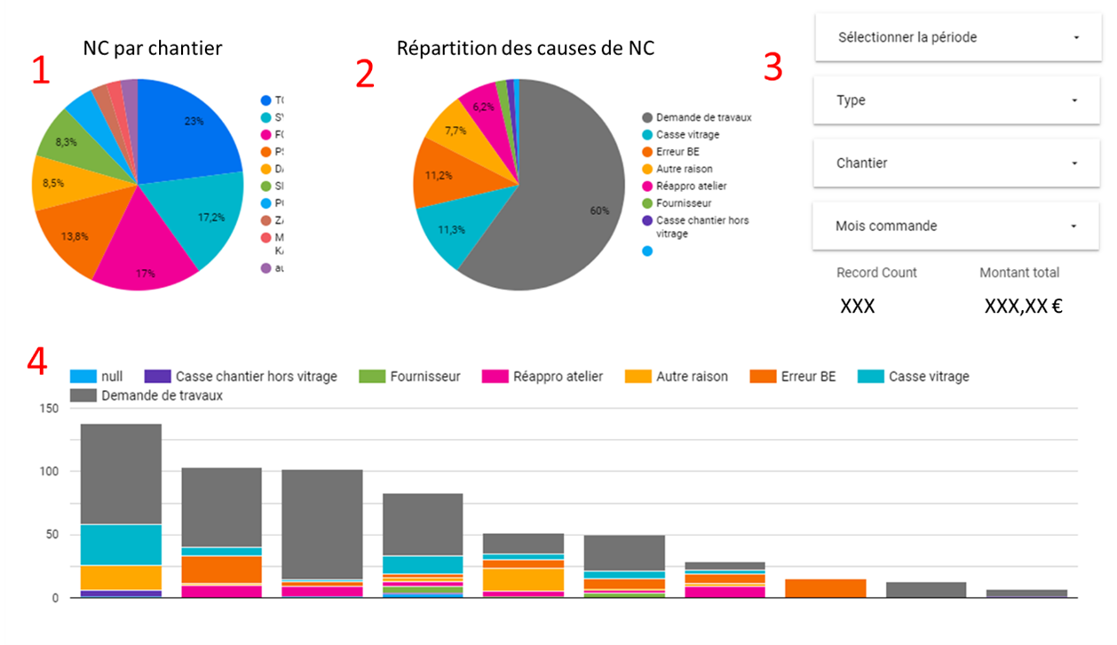 Schéma 3 : Les filtres. Et ça c’est vraiment cool. Tu veux seulement les stats d’un chantier sur une période particulière ? En 2 clics, les schémas s’actualisent 🪄
